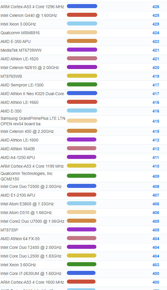 | 4268 | Intel Atom N435 @ 1.33GHz | 153 |