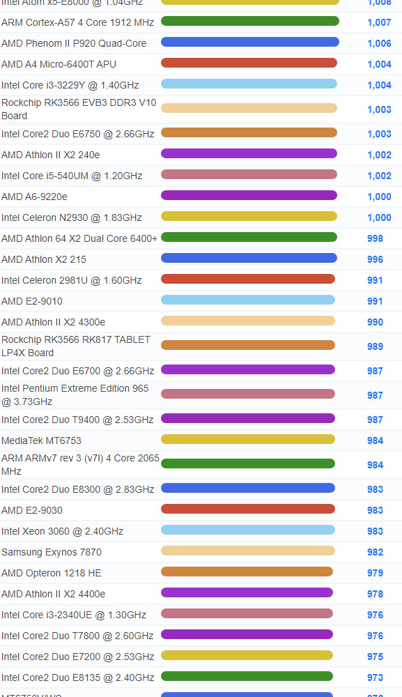 | 3280 | Intel Atom x5-E8000 @ 1.04GHz | 1,008 |