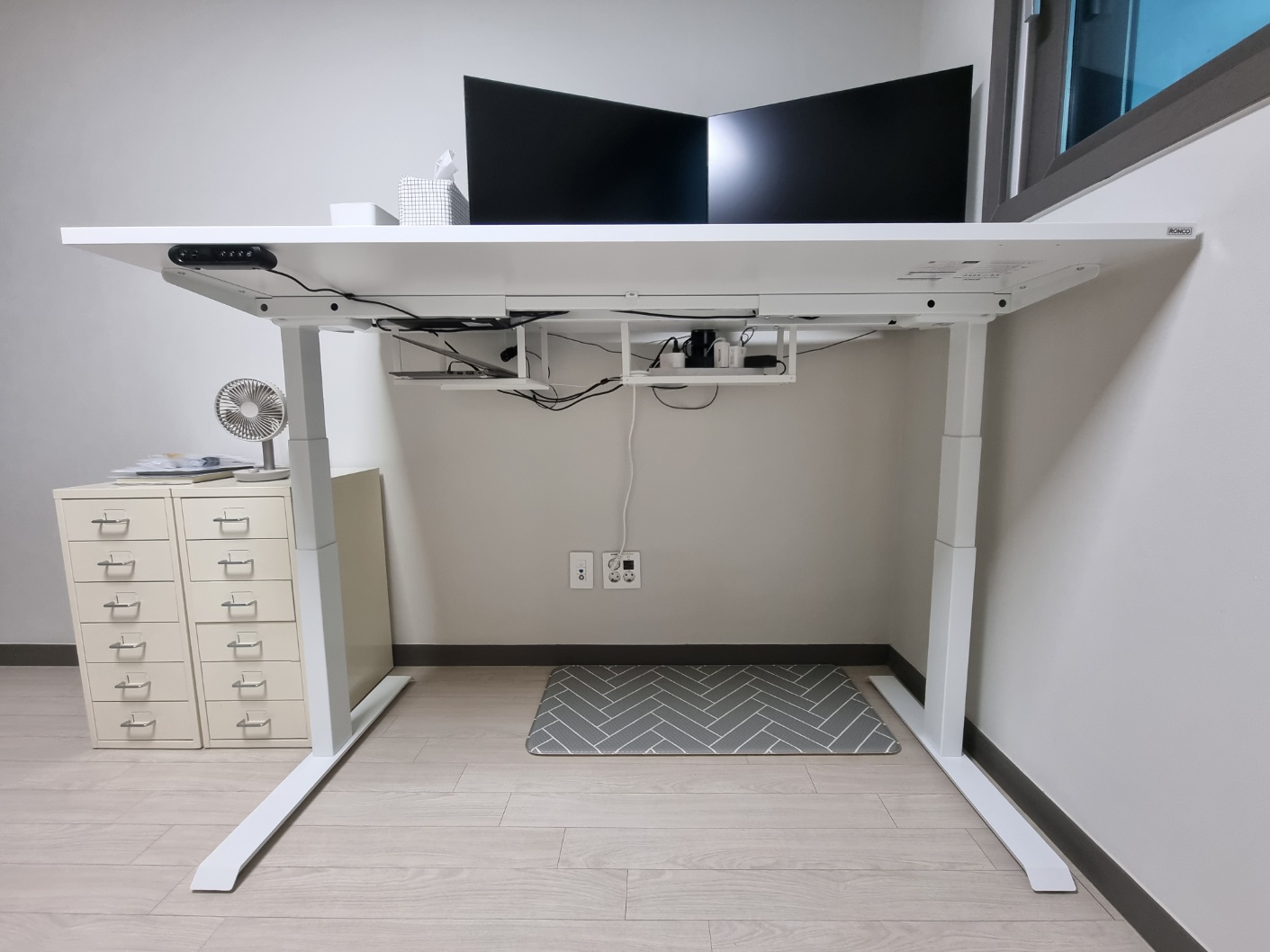 전동책상을 올려서 노트북 거치대와 전선 거치대를 찍어 봤습니다.