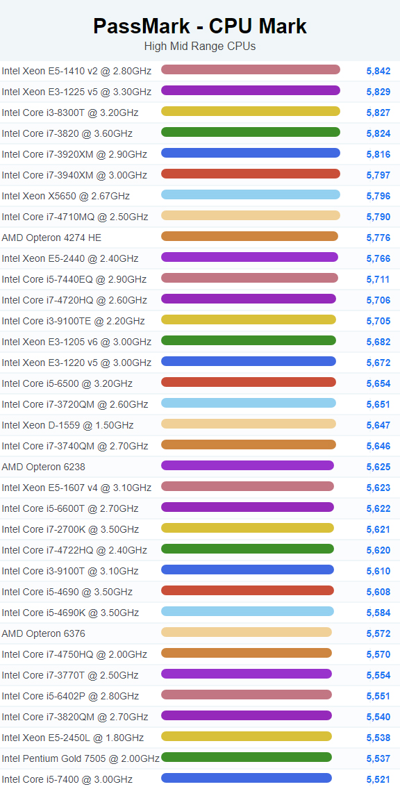 | 840 | Intel Core i5-6402P @ 2.80GHz | 5,551 |