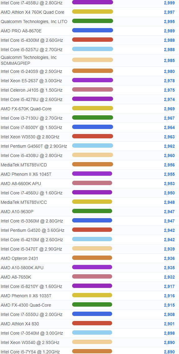 | 1570 | Intel Pentium 4417U @ 2.30GHz | 2,227 |