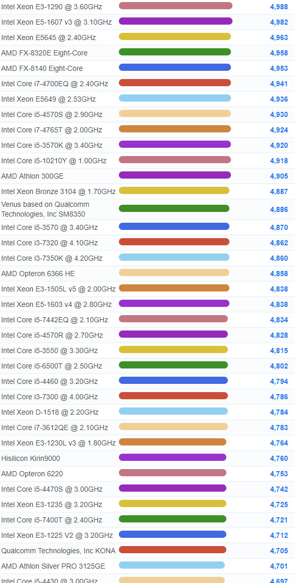 | 860 | Intel Core i5-4690S @ 3.20GHz | 5,378 |