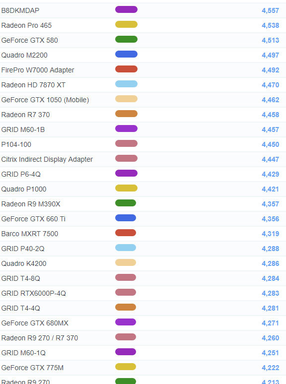 | 78 | GeForce GTX 1080 with Max-Q Design | 11,432 |