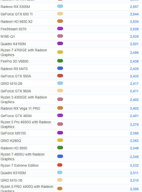 | 510 | Radeon RX Vega 11 Processor | 1,685 |
