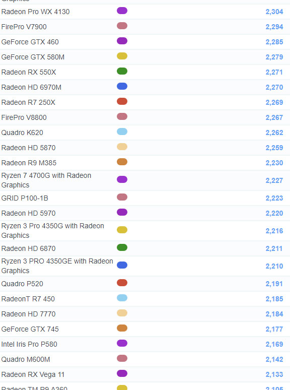 | 511 | Radeon Pro WX 2100 | 1,675 |
