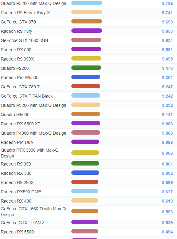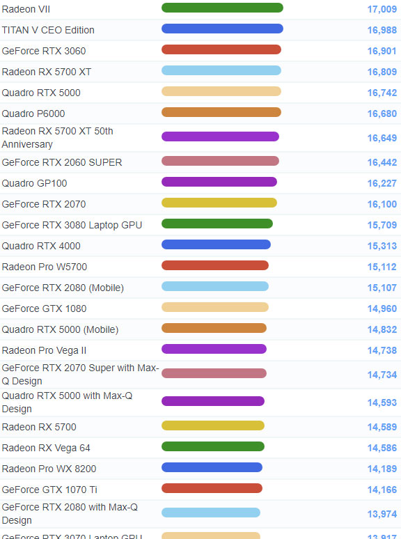 | 38 | Quadro RTX 5000 (Mobile) | 14,832 |