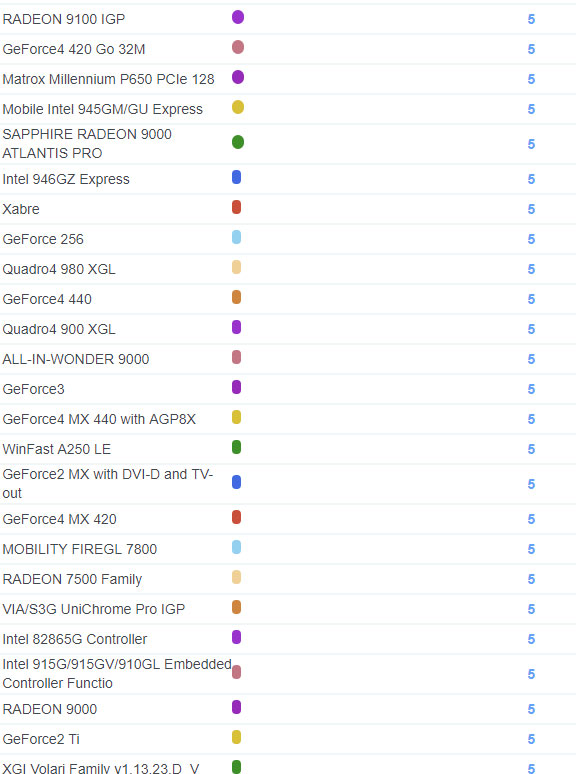 | 2063 | VIA/S3G UniChrome Pro IGP | 5 |