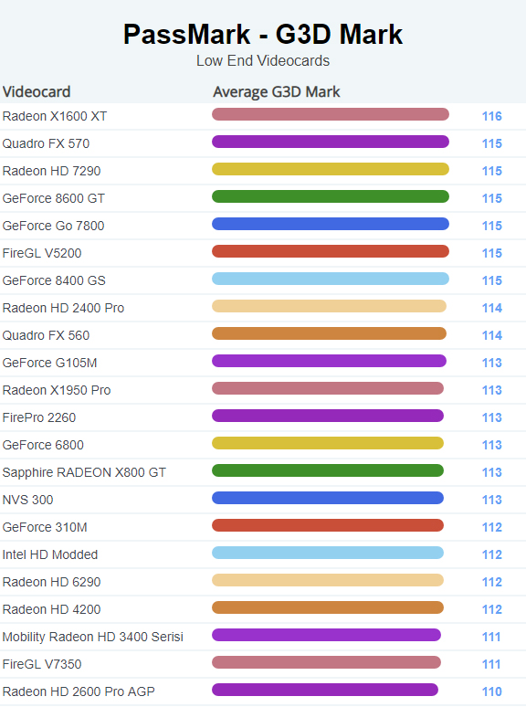 | 1636 | Radeon HD 2600 Pro AGP | 110 |