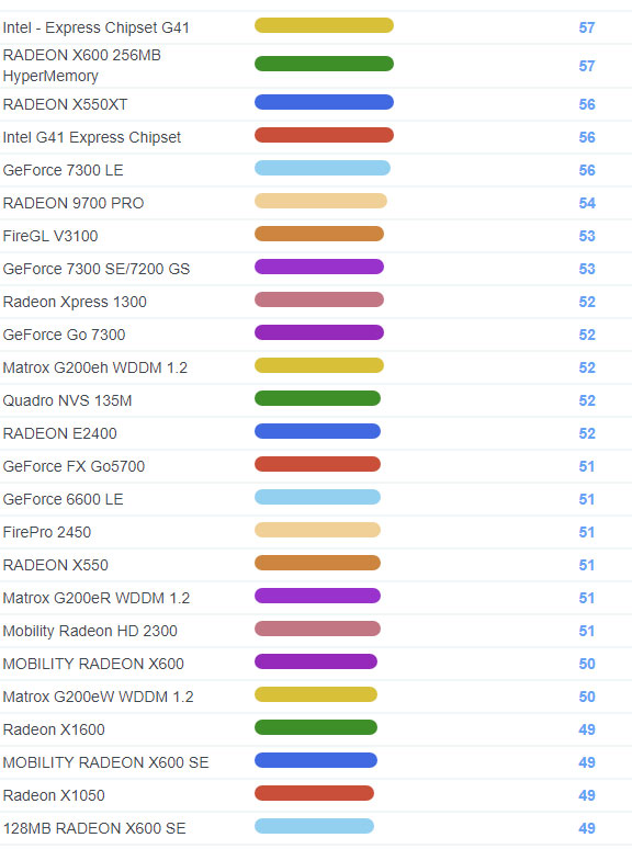 | 1622 | Radeon HD 2400 Pro | 114 |