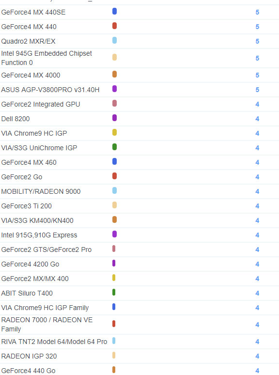 | 2087 | GeForce2 MX/MX 400 | 4 |