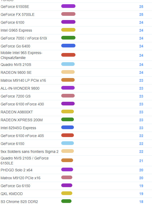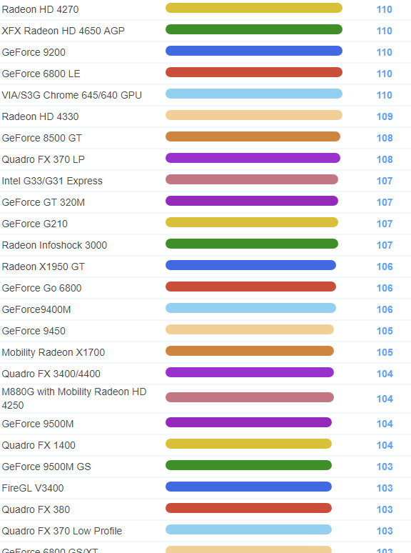 | 1672 | Mobility Radeon HD 3430 | 98 |