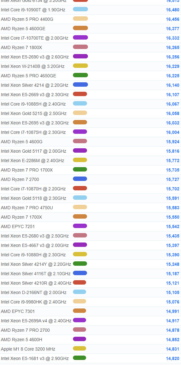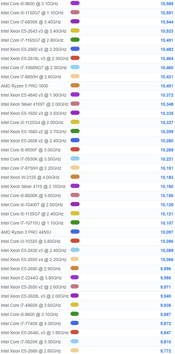 | 79 | Intel Xeon W-2265 @ 3.50GHz | 25,959 |