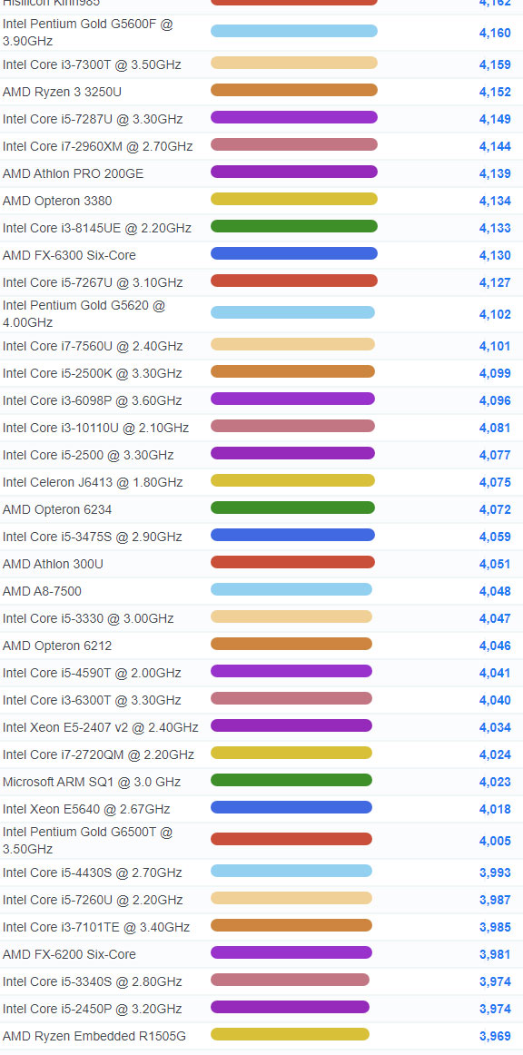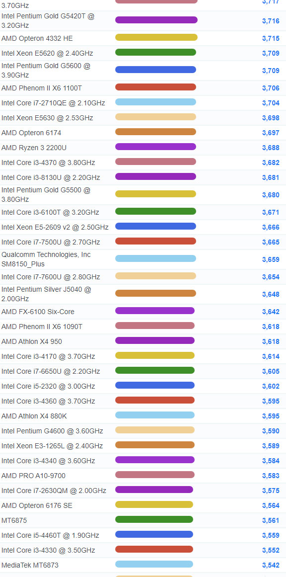 | 890 | Intel Core i3-8100T @ 3.10GHz | 5,333 |