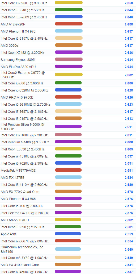| 1617 | Intel Core i5-650 @ 3.20GHz | 2,208 |