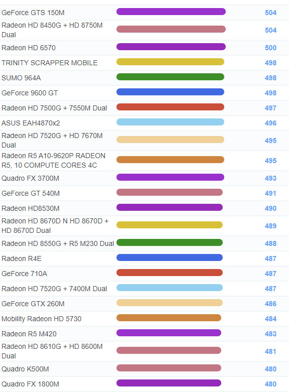 | 1116 | Radeon HD 8450G + R5 M230 Dual | 578 |