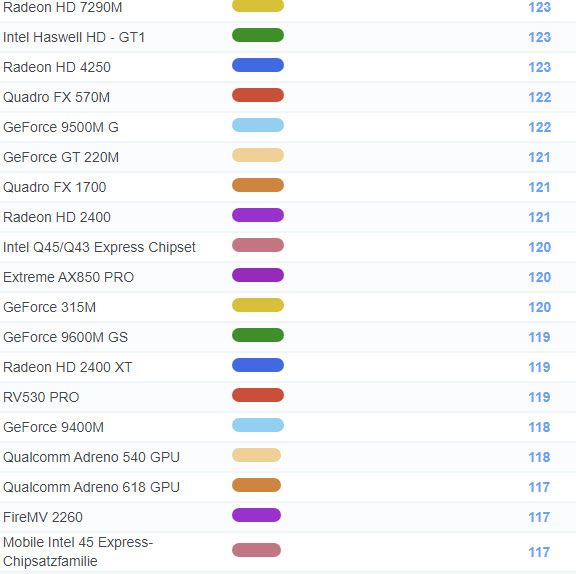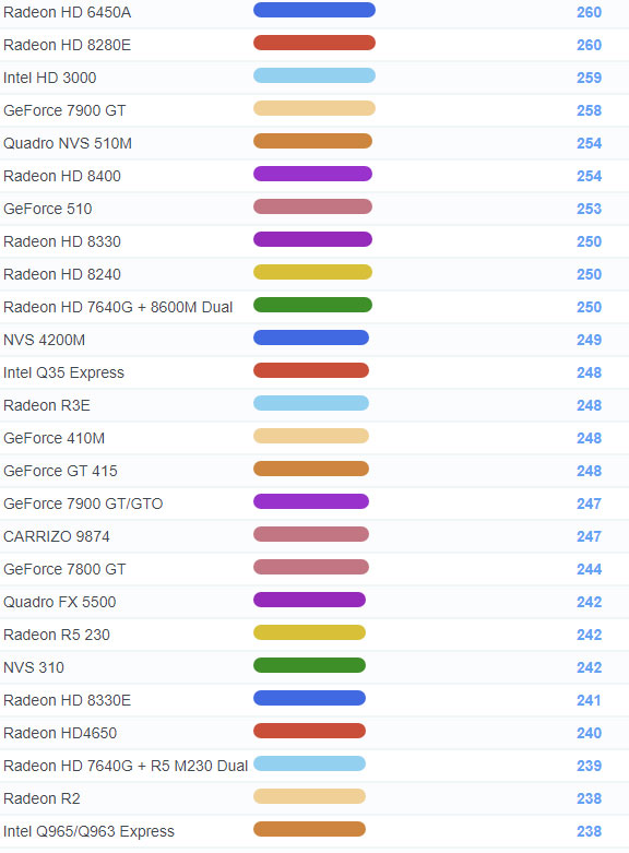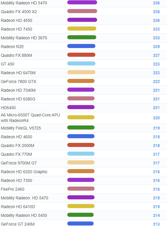 | 1564 | Mobility Radeon HD 4350 | 148 |