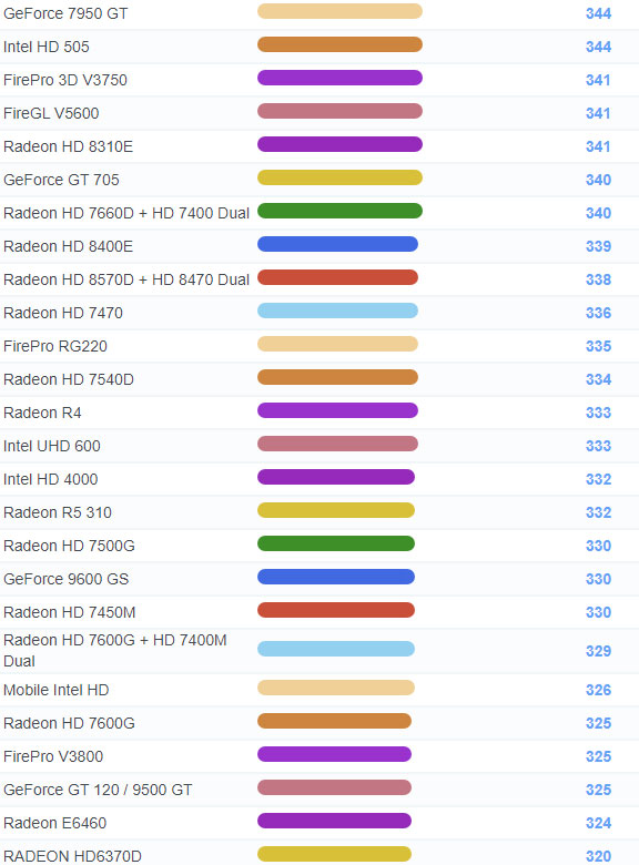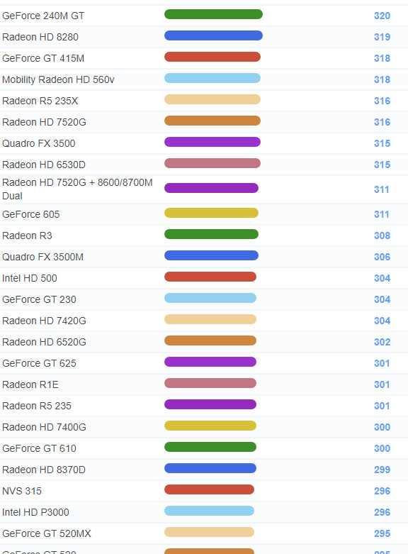 | 1129 | Radeon R6 + R7 M265DX Dual | 571 |