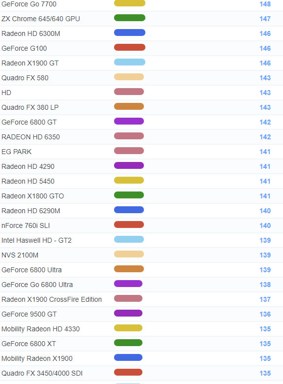 | 1584 | GeForce Go 6800 Ultra | 138 |