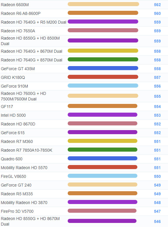 | 1154 | Mobility Radeon HD 5570 | 551 |