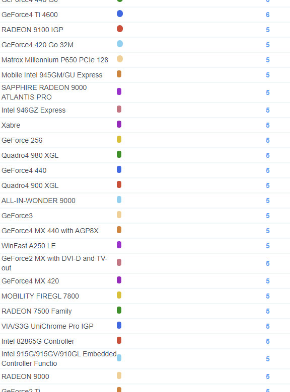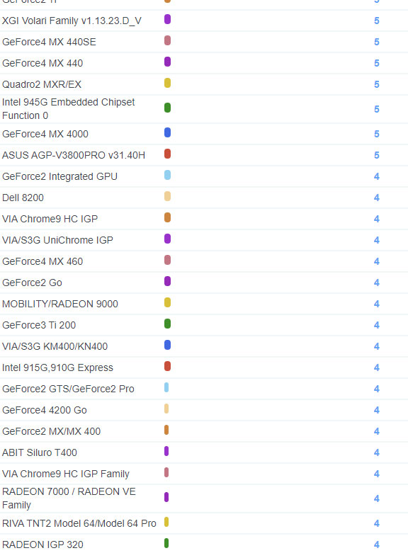 | 2099 | GeForce4 MX 4000 | 5 |