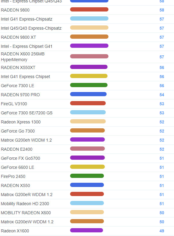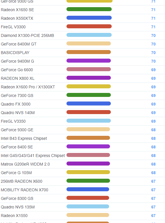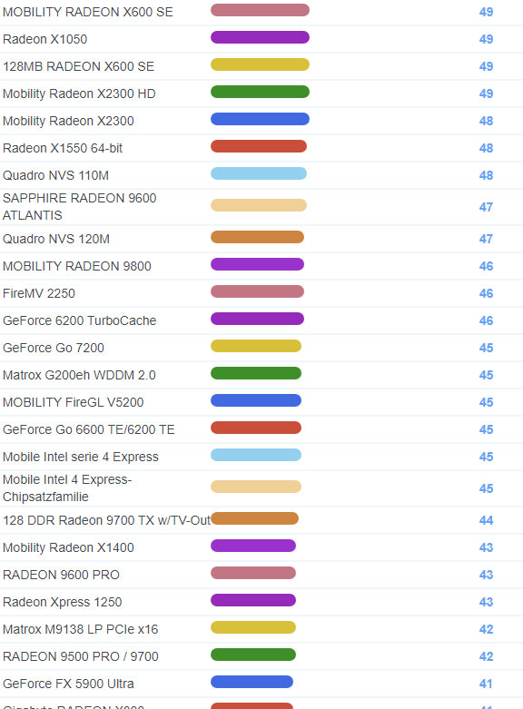 | 1698 | Mobility Radeon HD 3430 | 98 |