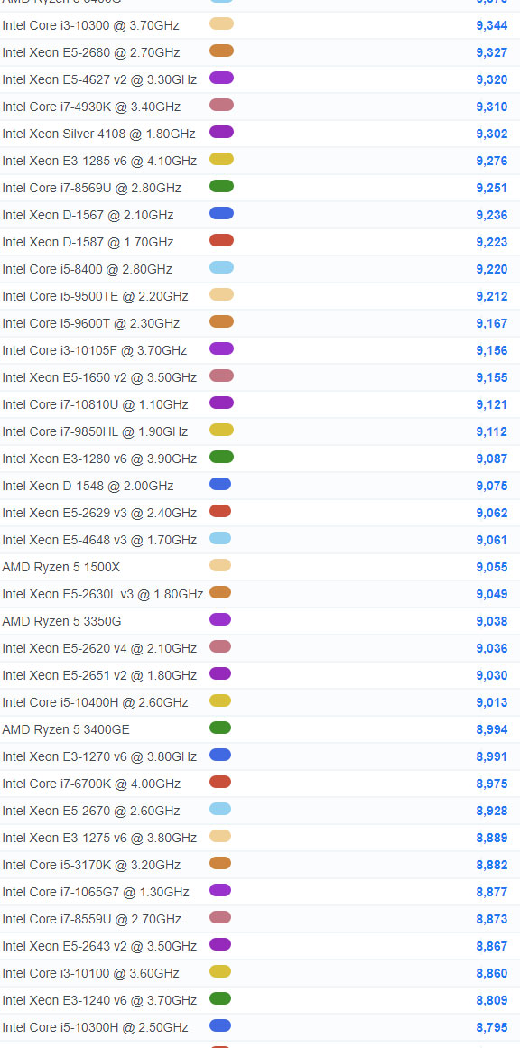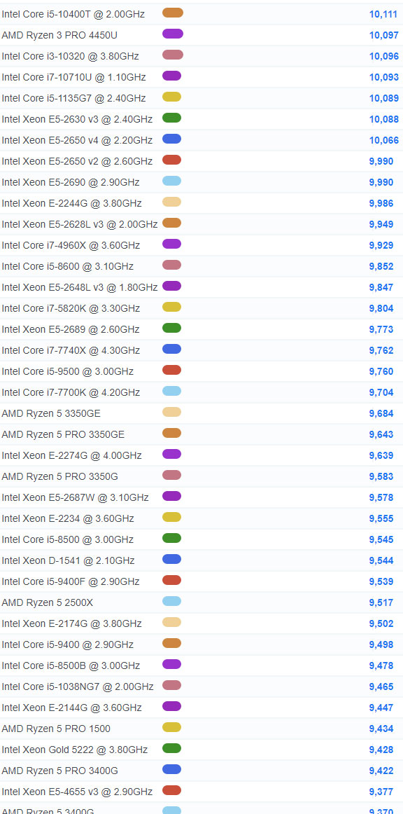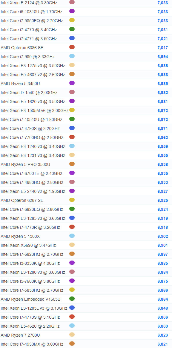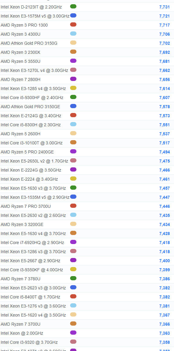 | 751 | Intel Core i5-8279U @ 2.40GHz | 6,558 |
