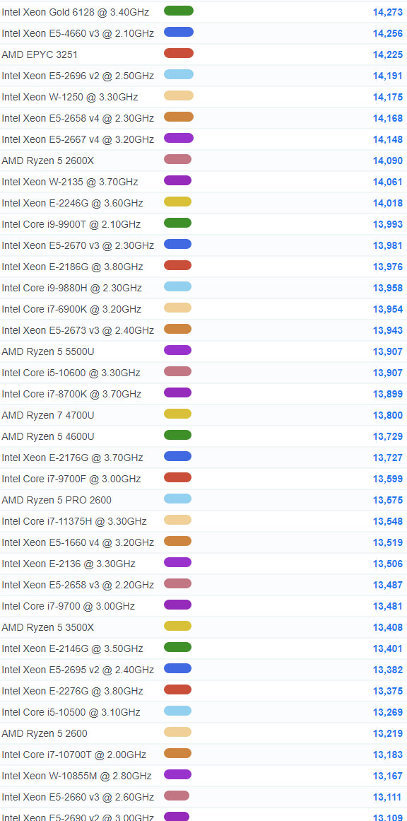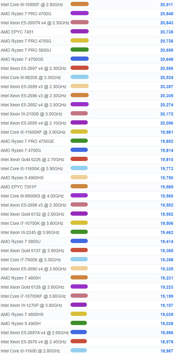 | 50 | Intel Xeon W-3245 @ 3.20GHz | 30,473 |