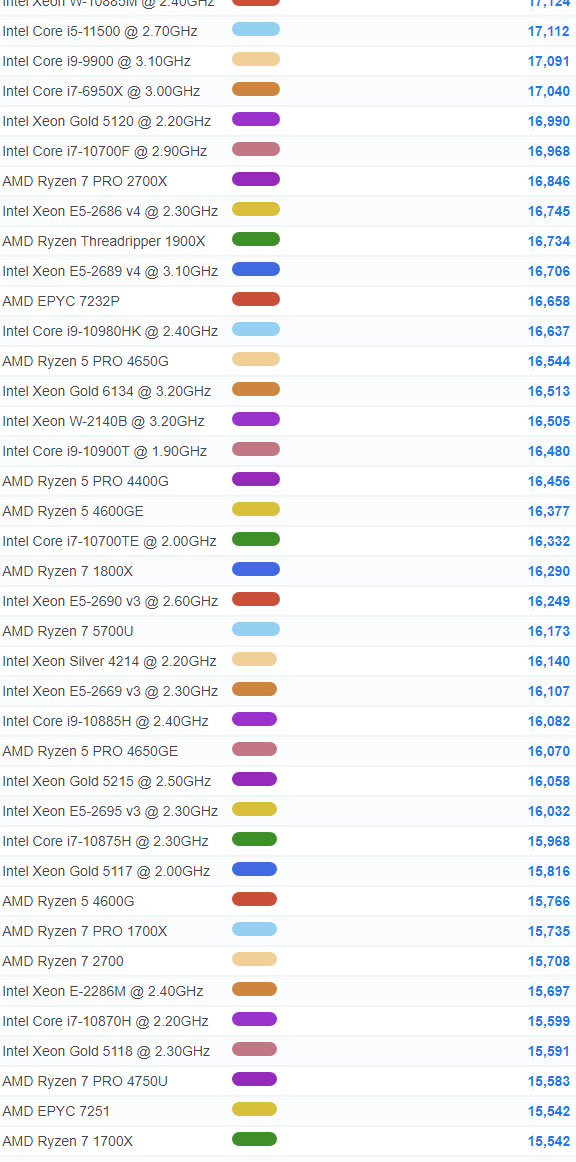 | 21 | Intel Xeon W-3275M @ 2.50GHz | 39,478 |