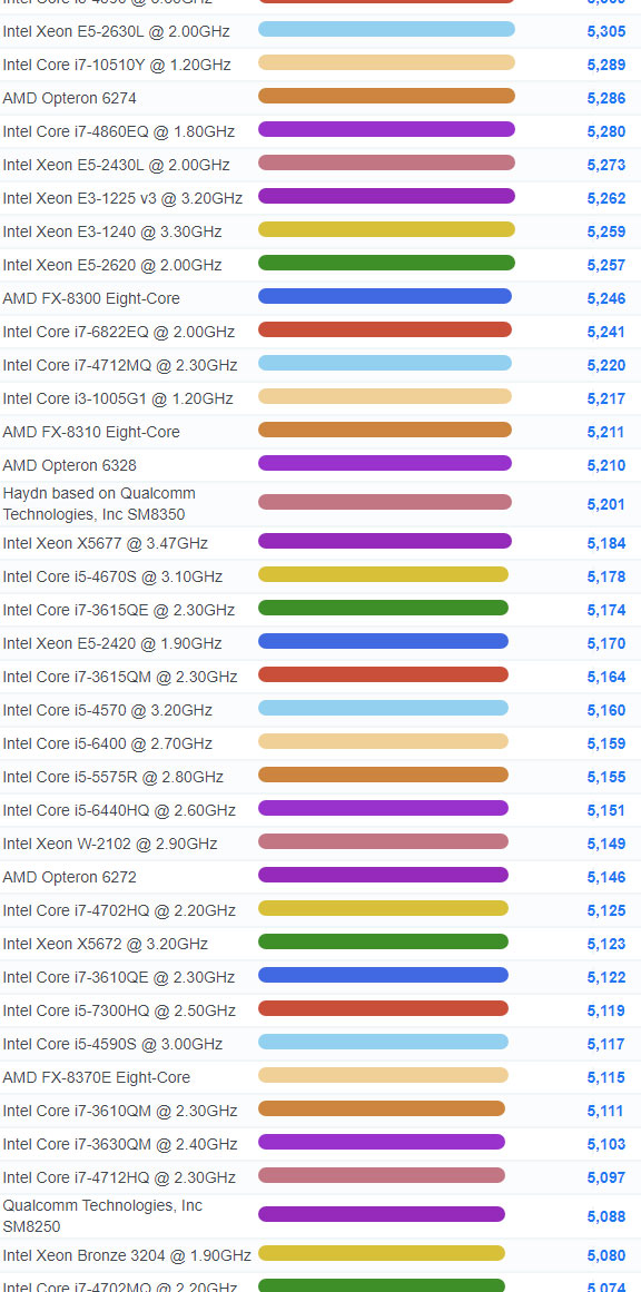 | 917 | Intel Core i7-10510Y @ 1.20GHz | 5,289 |