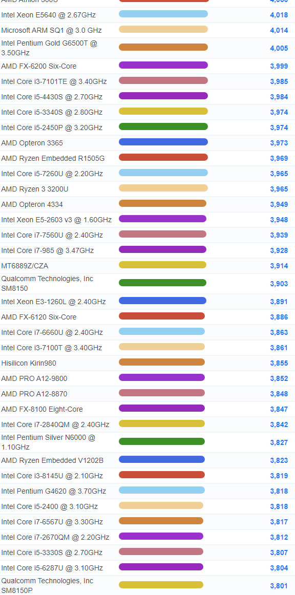 | 904 | Intel Core i5-7500T @ 2.70GHz | 5,375 |