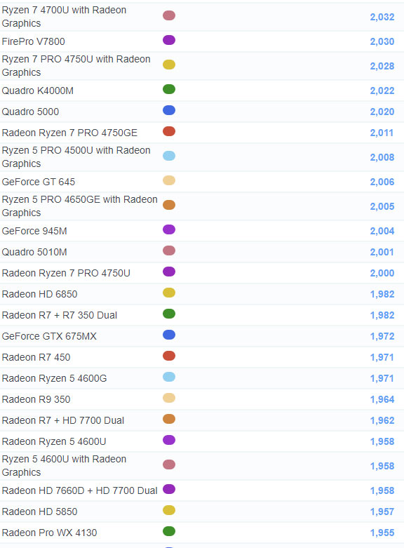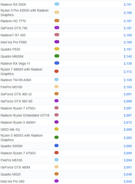 | 470 | Radeon Ryzen 5 4600G | 1,971 |
