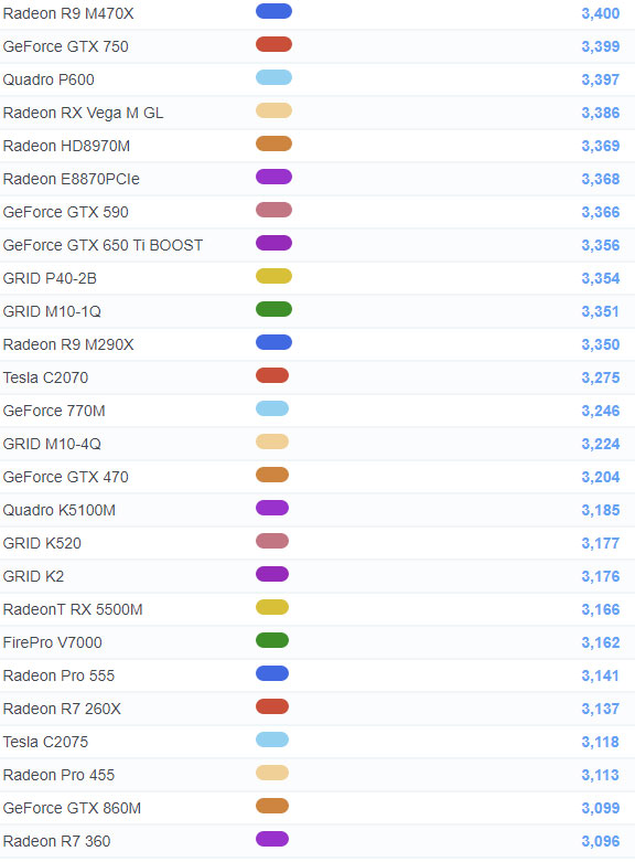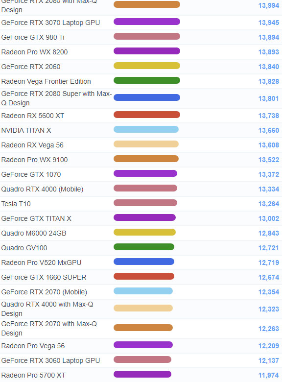 | 37 | Radeon Pro W5700 | 15,038 |