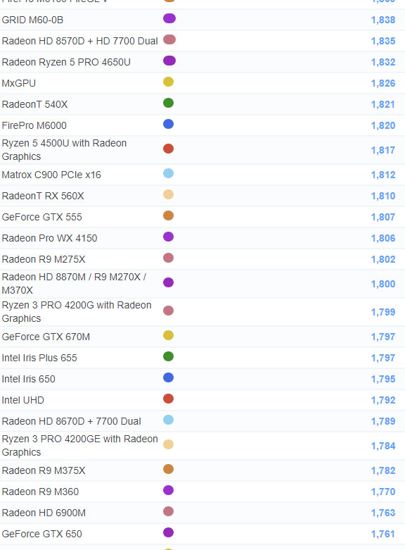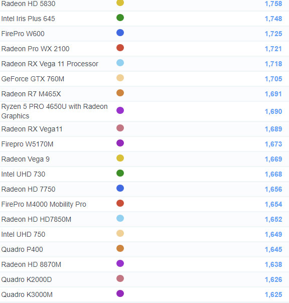 | 534 | Radeon R7 M465X | 1,691 |