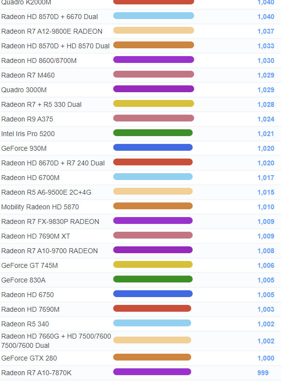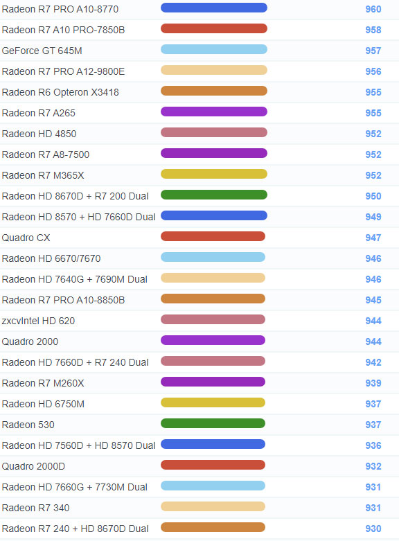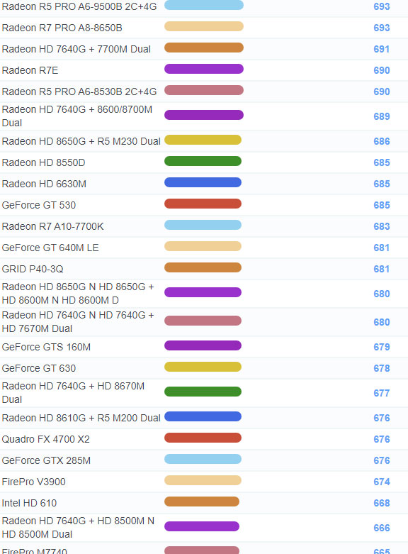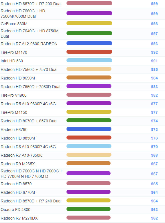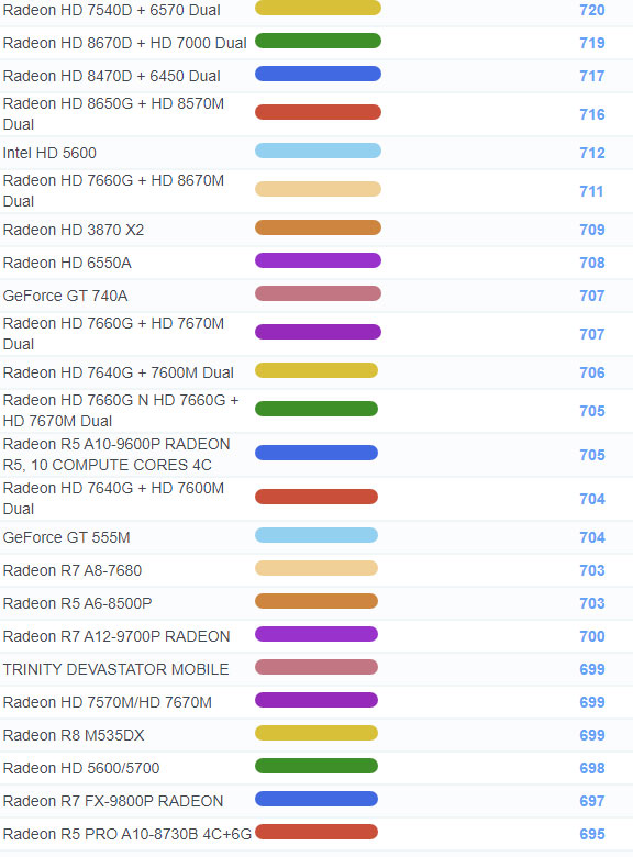| 1005 | Radeon HD 8650G + R5 M230 Dual | 686 |