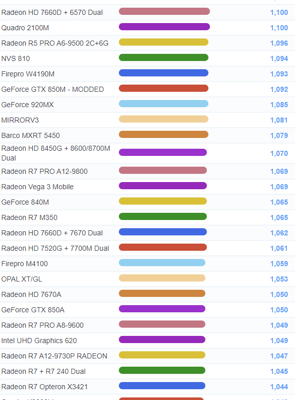| 1081 | Radeon HD 8550G + R5 M200 Dual | 619 |