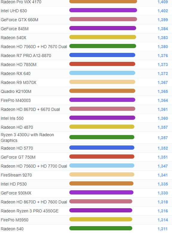 | 581 | Embedded Radeon E9173 | 1,485 |
