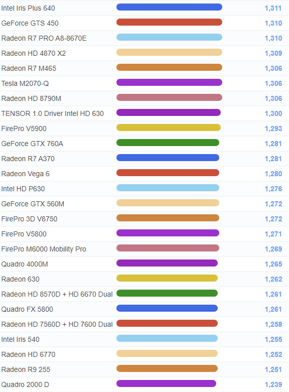 | 621 | Intel Iris Plus 640 | 1,311 |