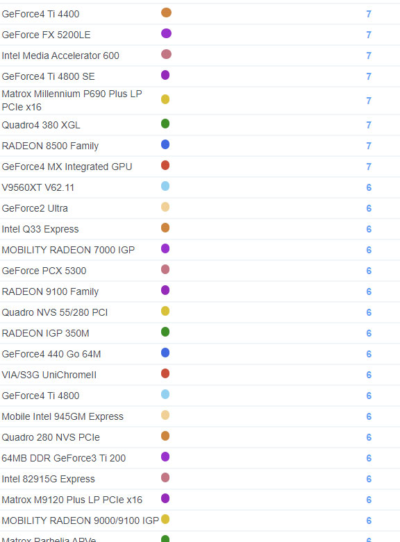 | 2126 | RIVA TNT2 Model 64/Model 64 Pro | 4 |