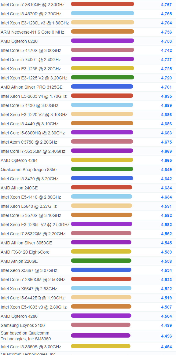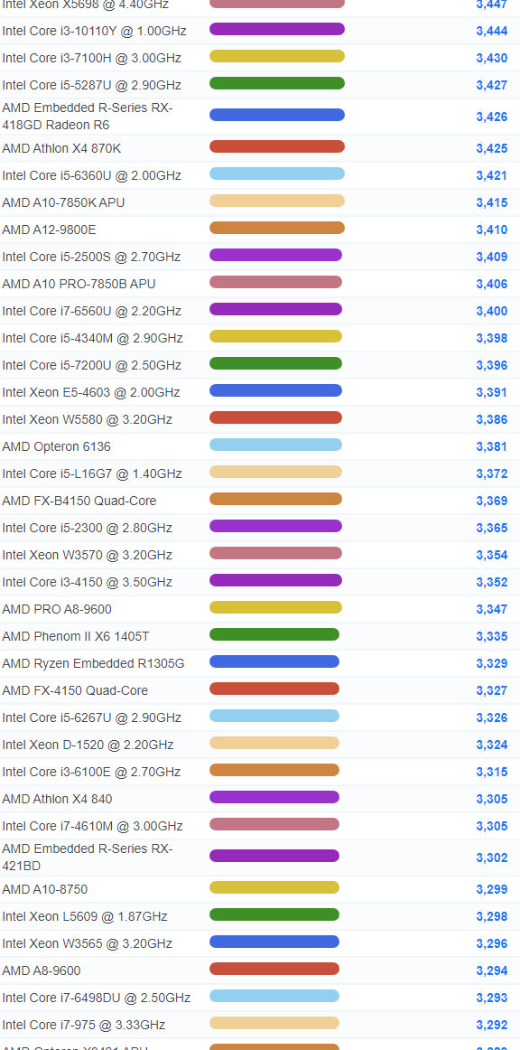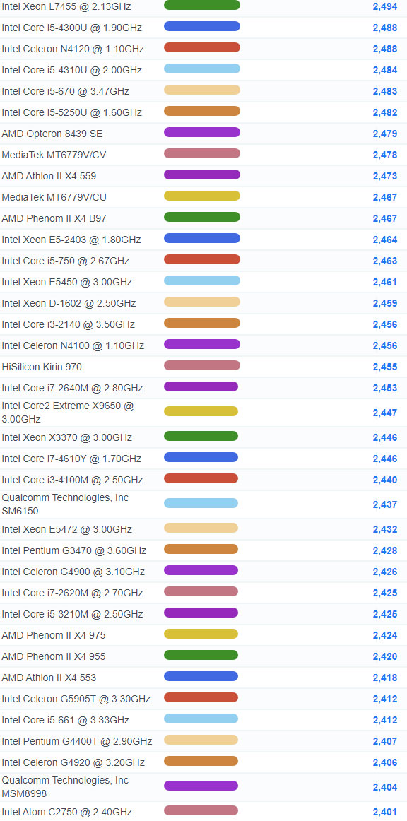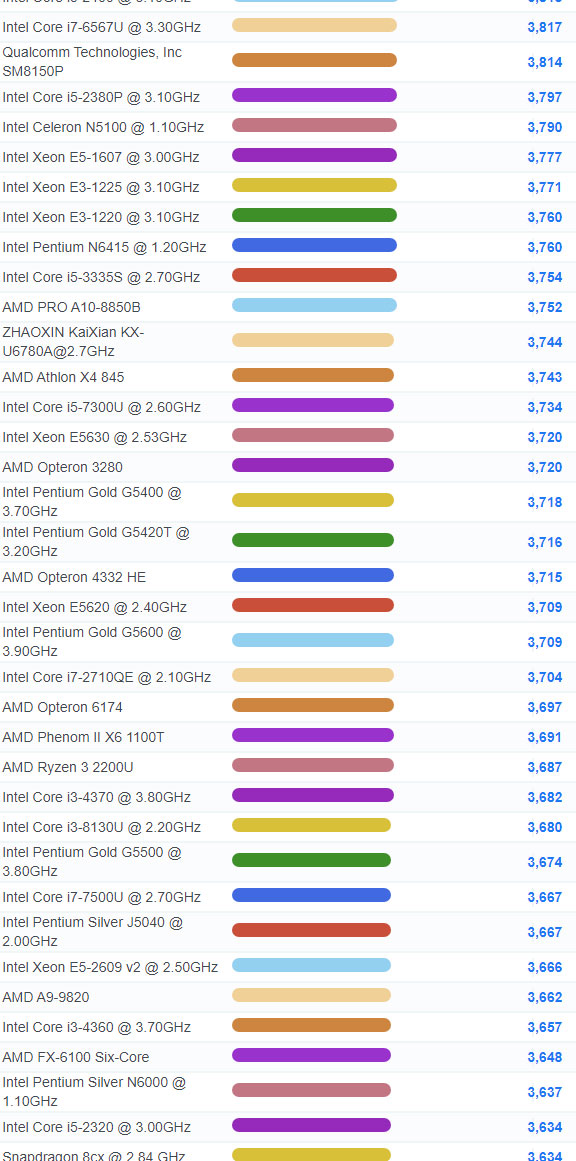 | 917 | Intel Core i5-7500T @ 2.70GHz | 5,382 |