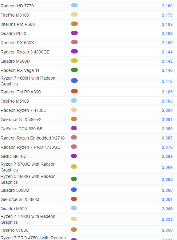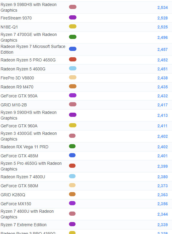 | 467 | Radeon Ryzen 7 PRO 4750GE | 2,076 |