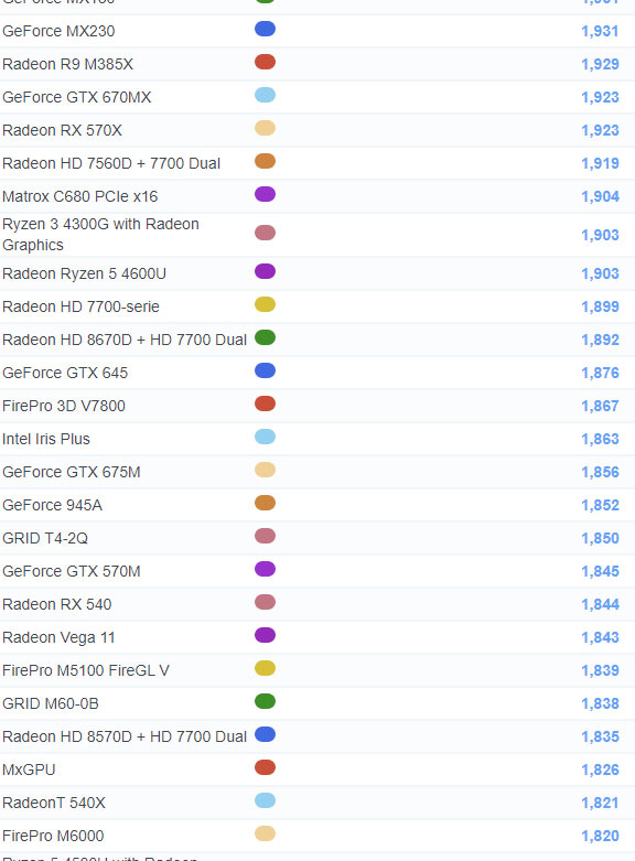 | 501 | GeForce MX230 | 1,931 |