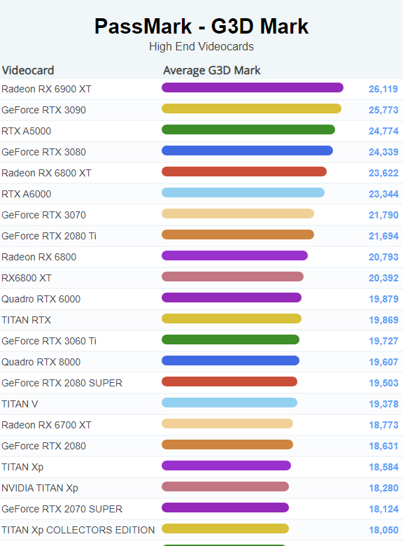 | 1 | Radeon RX 6900 XT | 26,119 |