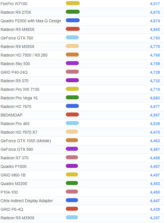 | 531 | Radeon Pro WX 4150 | 1,806 |