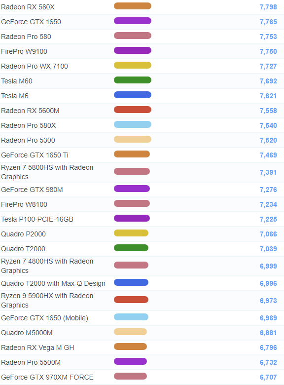 | 41 | Radeon Pro W5700 | 15,040 |