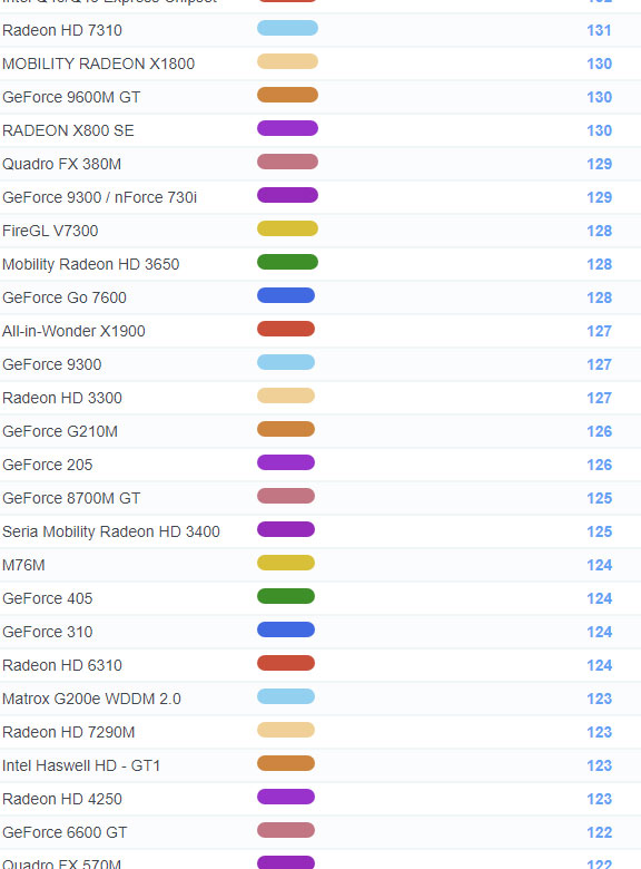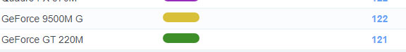 | 1628 | Mobility Radeon HD 4570 | 133 |