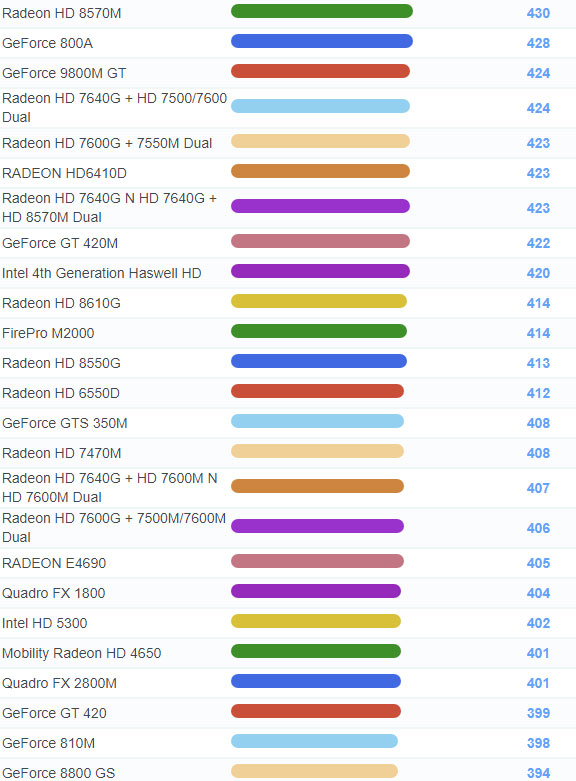 | 1161 | Radeon R6 + R7 M265DX Dual | 571 |