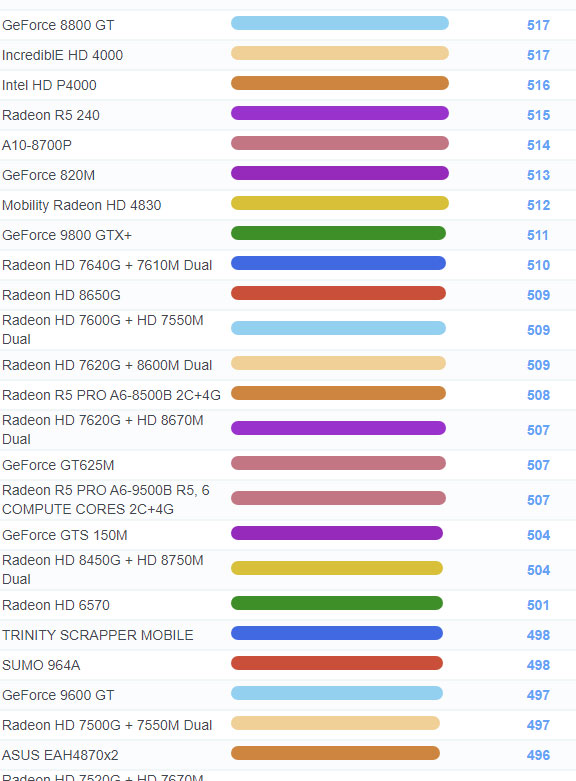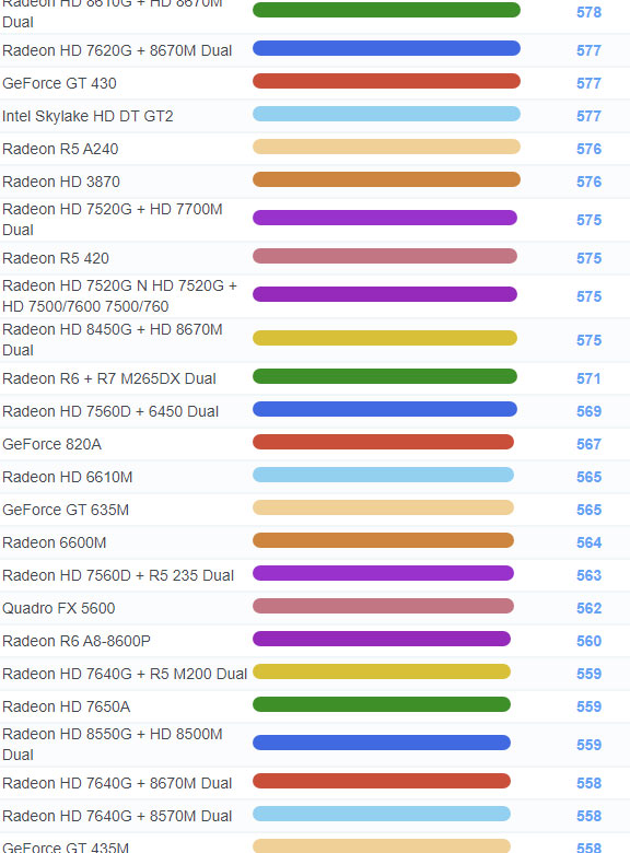 | 1184 | Radeon R7 7850A10-7850K | 551 |