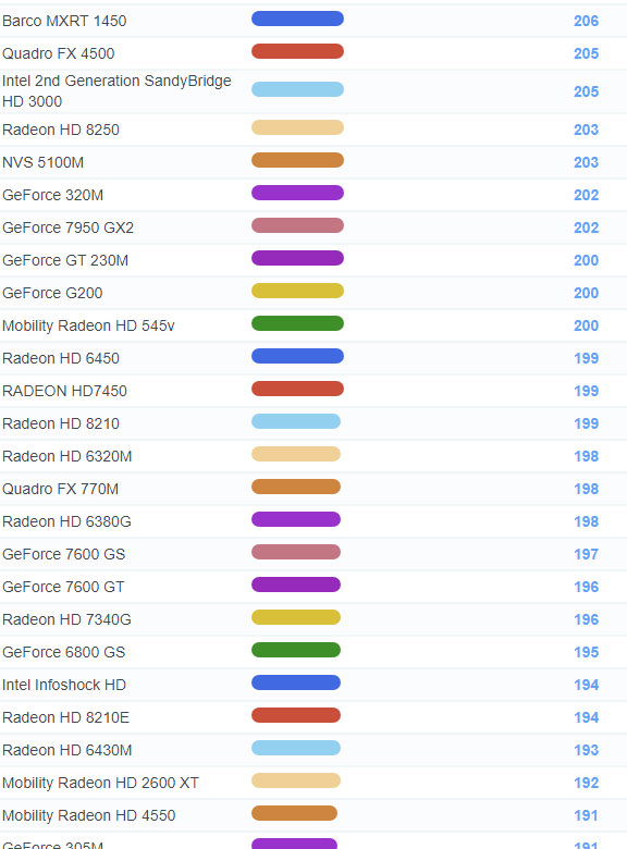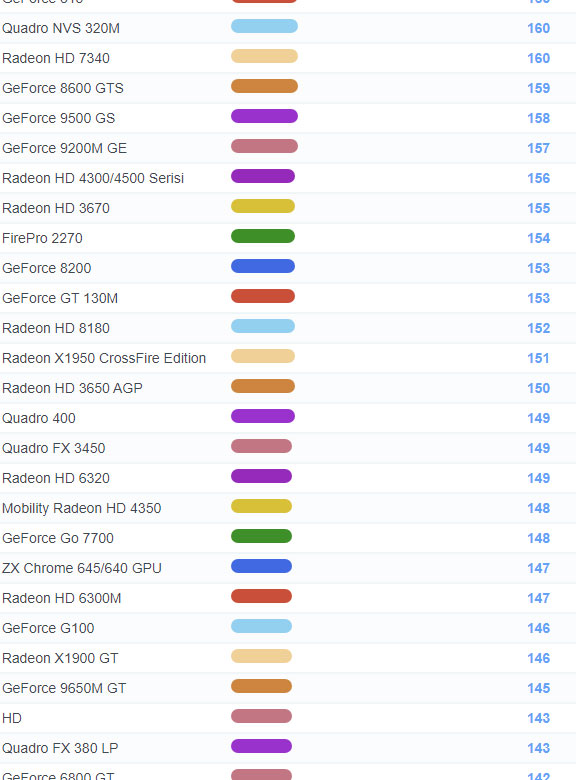 | 1592 | Radeon HD 3650 AGP | 150 |