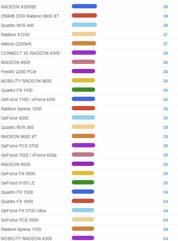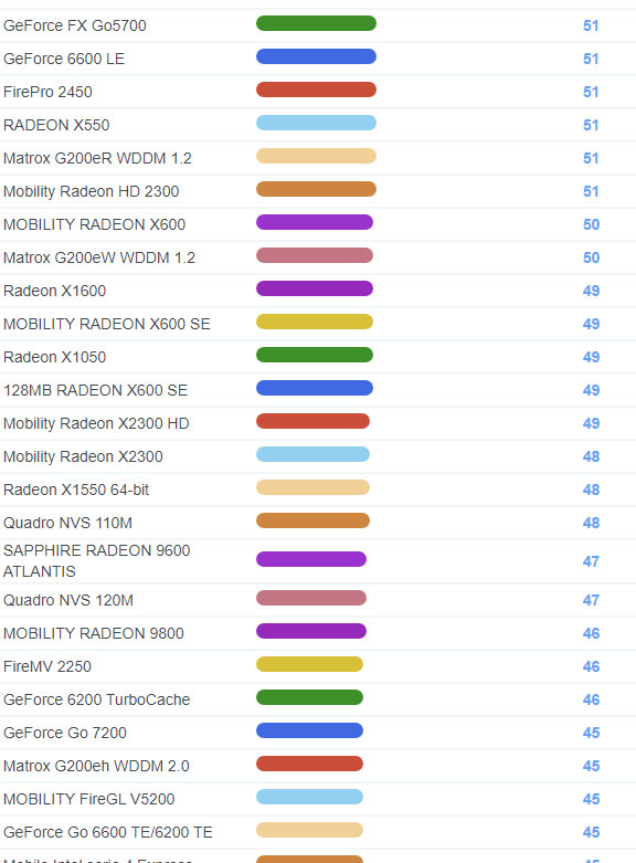| 1665 | Radeon HD 2400 XT | 119 |