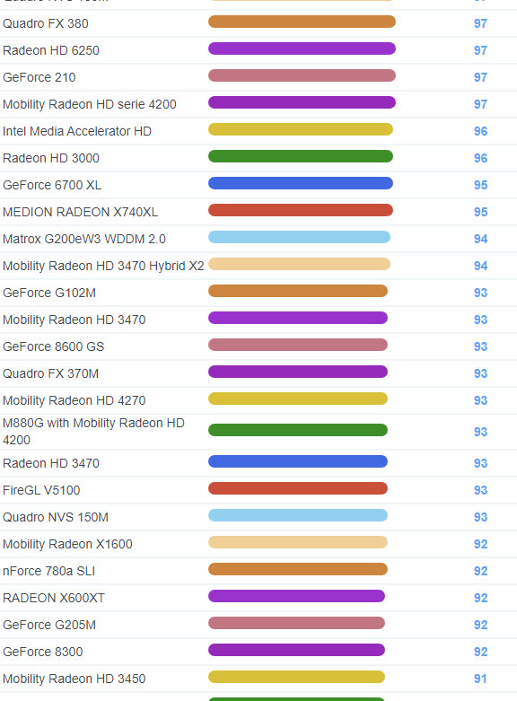 | 1735 | Radeon HD 6250 | 97 |